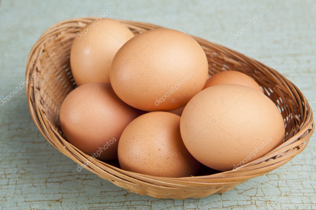 Eggs in a bascket on blue stone table