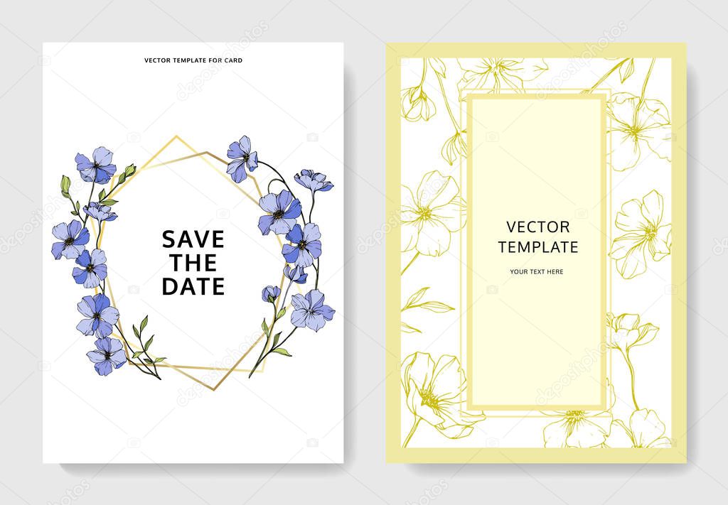 - Vector Flax. Engraved ink art. Wedding background cards with decorative flowers. Invitation cards graphic set banner.