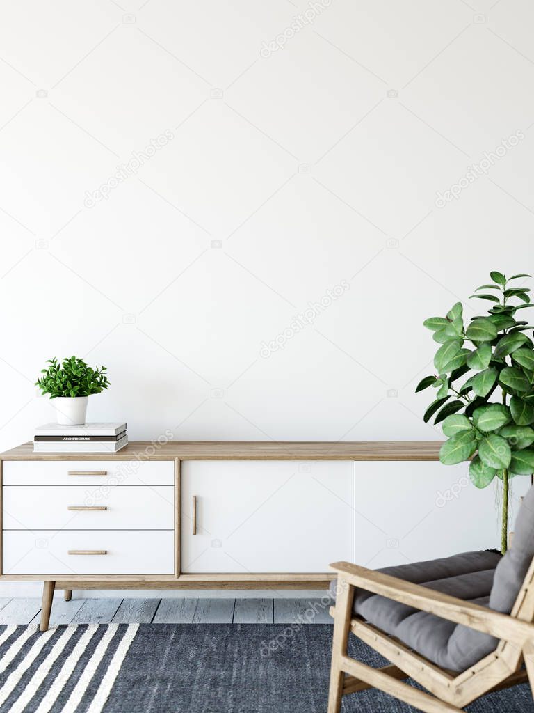 Living room interior. Wall mockup. Wall art. 3d rendering, 3d illustration.