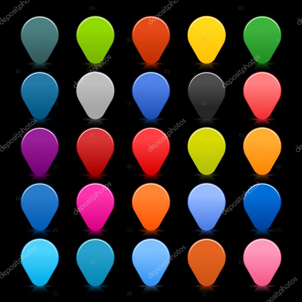 25 mapping pins sign web map icon. Empty buttons circle shape with shadow and reflection on gray background. Newest contemporary simple style.