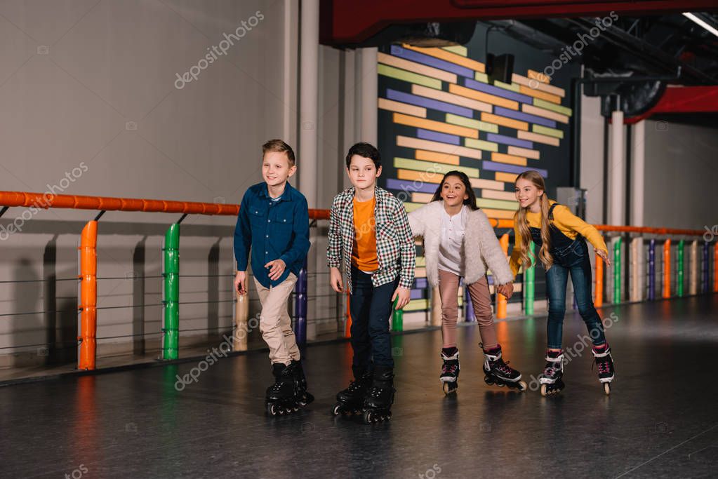 - Group of friends in roller skates training together
