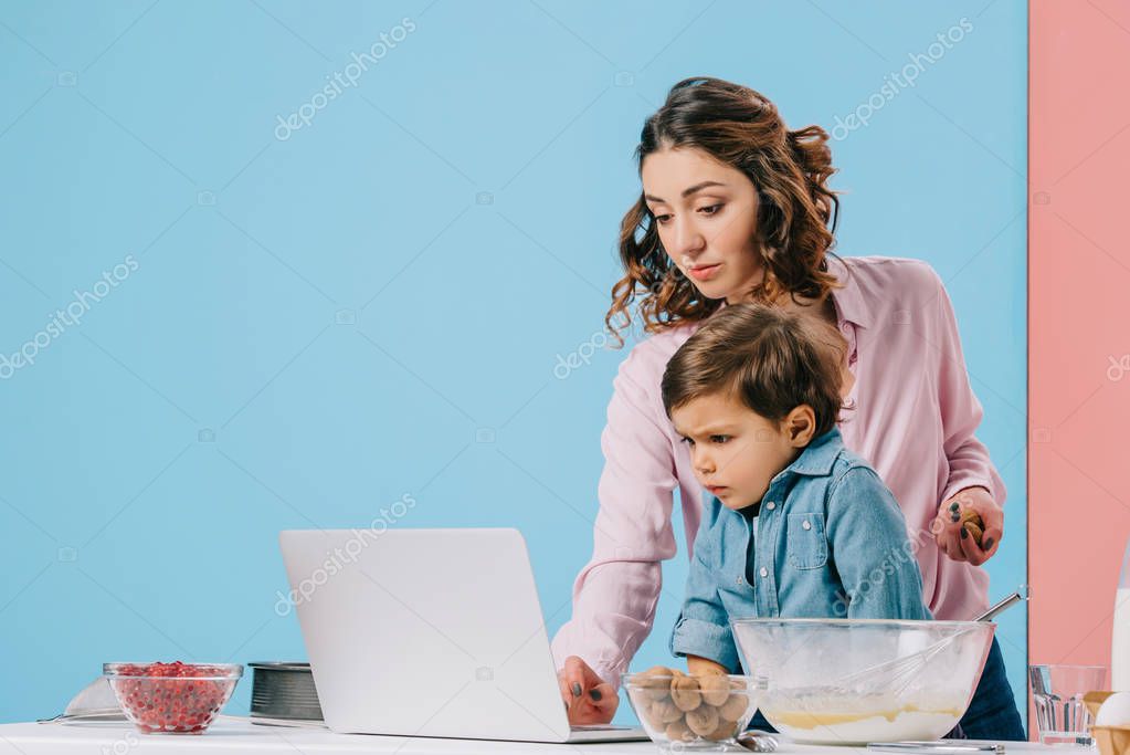 TABLE WHITE BLUE COMPUTER BACKGROUND BEAUTIFUL ADULT PEOPLE CUTE CAUCASIAN FOOD COOKING CUISINE CHILD FAMILY MALE CONNECTION COOK BOY CHILDHOOD PRESCHOOL KID PREPARE PINK ADORABLE WOMAN COMMUNICATION WIRELESS LAPTOP CULINARY TOGETHER TOGETHERNESS USING SURFACE INGREDIENTS ATTRACTIVE SON MOTHER PARENT GADGET MOM PREPARING EGGS BOWLS WALNUTS MOMMY COPY SPACE STUDIO SHOT COOKING UTENSILS DIGITAL DEVICE
