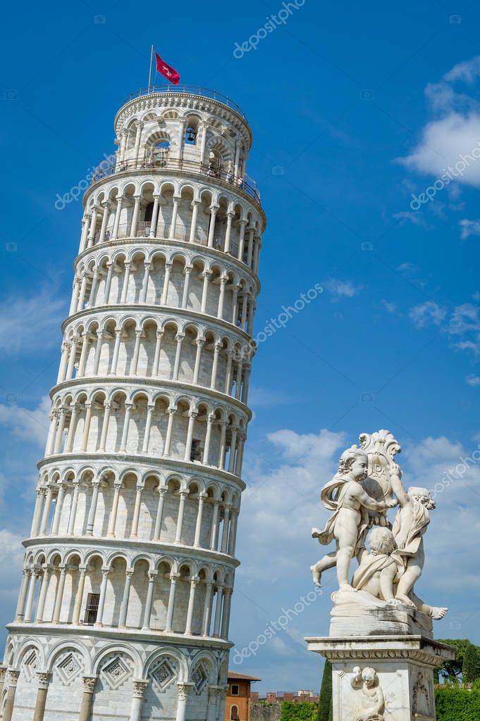 - Putti Fountain and Pisa Tower vertical photo