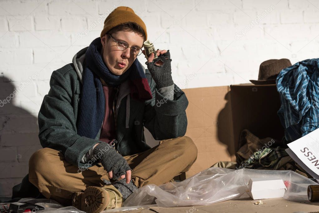 WHITE OBJECTS MONEY PAPER FINANCIAL PERSON ADULT PEOPLE CAUCASIAN LIFE CARDBOARD MALE MAN EYES URBAN STREET BILLS CASH DOLLARS FINANCE RUBBISH LONELINESS MISERABLE GLASSES LONELY MUDDY DESPAIR POOR POVERTY DUMP HOMELESSNESS CHARITY HOMELESS SPECTACLES BEGGAR NEED POORNESS DESTITUTE HOBO COPY SPACE BRICK WALL FINGERLESS GLOVES SOCIAL PROBLEM