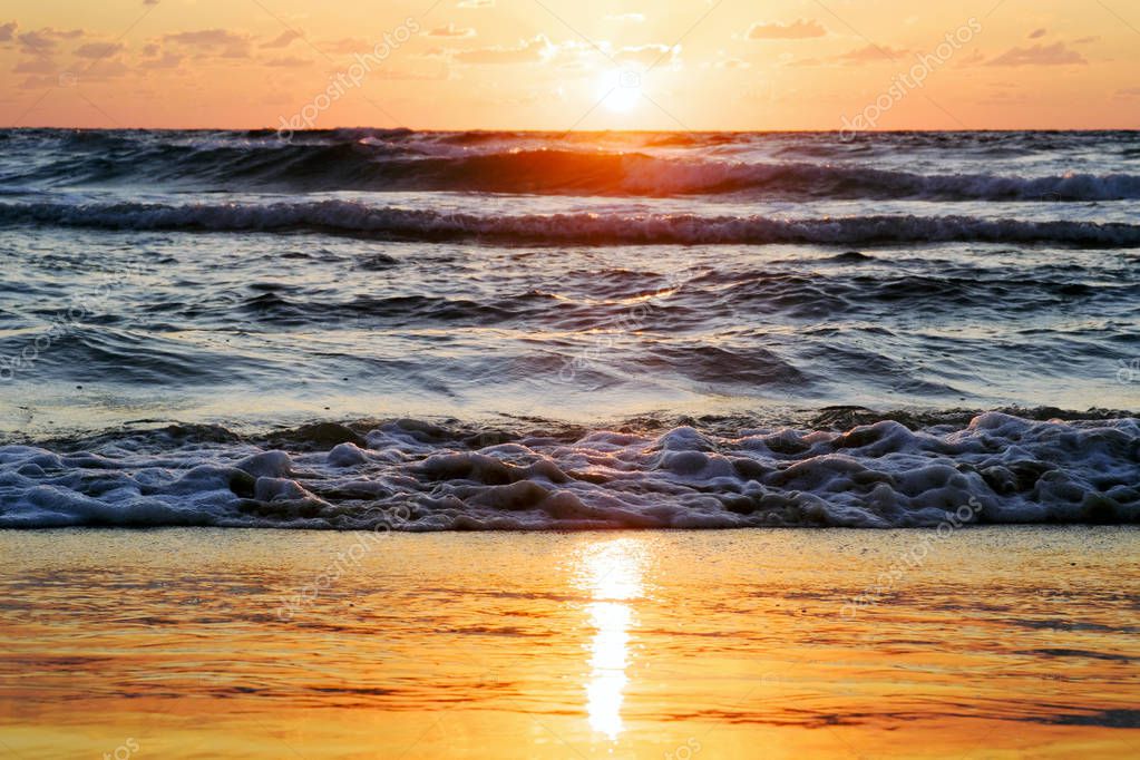 Sunset and sun and sea and water and clouds