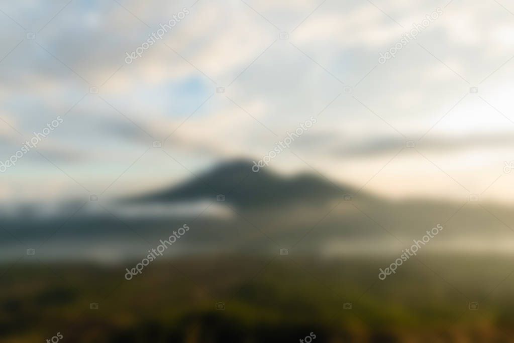 Mount Batur hiking Bali Indonesia Travel theme creative abstract blur background with bokeh effect