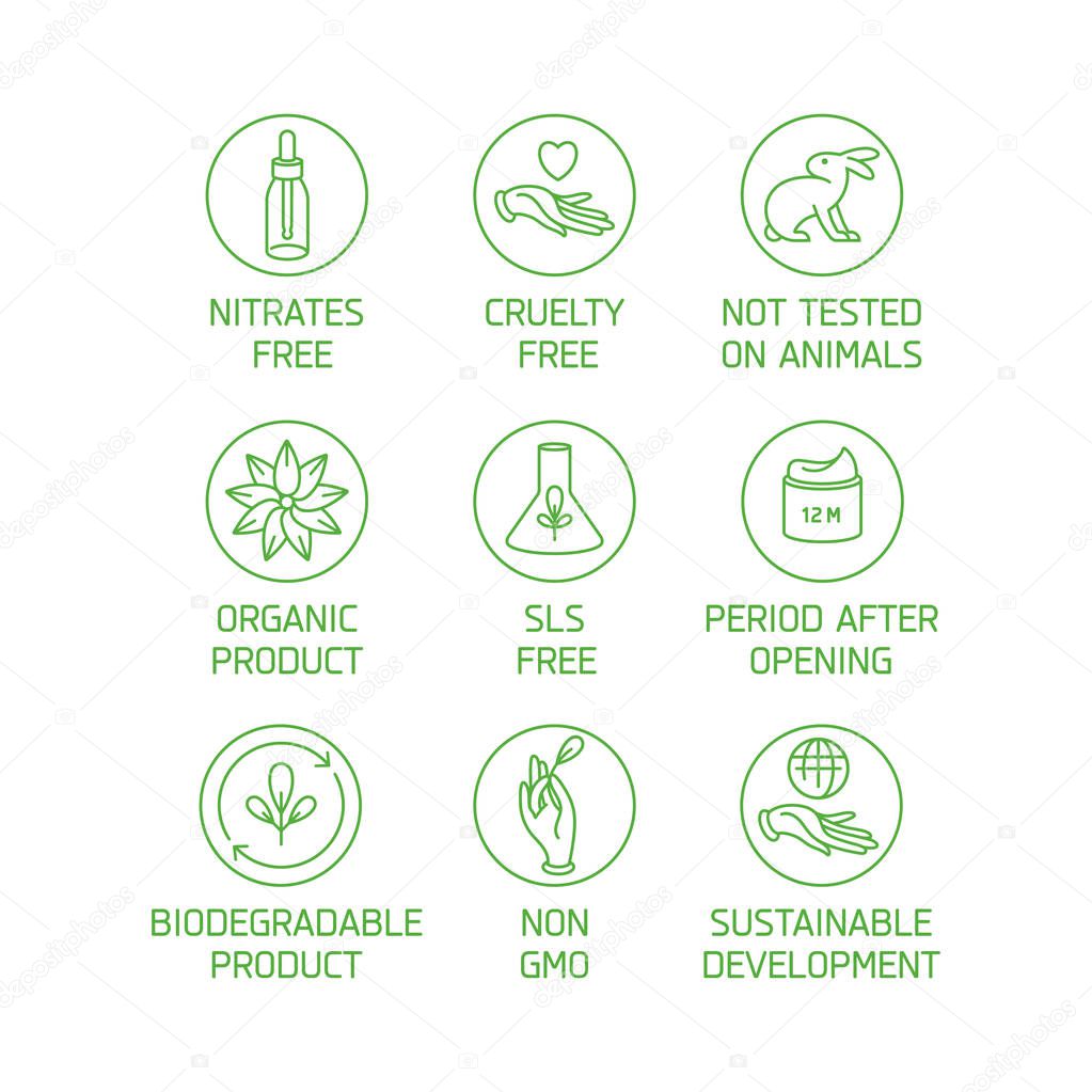 VECTOR ILLUSTRATION SET ISOLATED MINERAL SIGN NATURAL FOOD ANIMAL LINE SYMBOL ICON VEGETARIAN ECOLOGY PRODUCT CONTOUR ORGANIC COSMETOLOGY COSMETICS RECYCLE BADGE ECOLOGICAL COLLECTION INGREDIENTS OUTLINE HANDMADE BIO RABBIT PICTOGRAM VEGAN BUNDLE BIODEGRADABLE DESIGN ELEMENT ENVIRONMENTALLY FRIENDLY ECO FRIENDLY GLUTEN FREE SUSTAINABLE DEVELOPMENT ORGANIC PRODUCT NATURAL INGREDIENTS NON GMO NATURAL FRAGRANCE CRUELTY FREE NOT TESTED ON ANIMALS NITRATES FREE PARABEN FREE PERIOD AFTER OPENING SLS FREE PLANT DYED FRESH COSMETICS