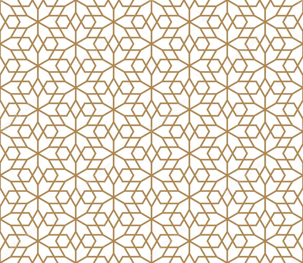 Seamless pattern based on Japanese ornament Kumiko.Golden color.