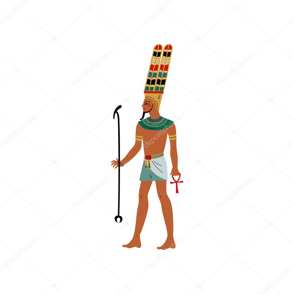Amon, God of Black Heavenly Space, Air, Symbol of Ancient Egyptian Culture Vector Illustration on White Background.