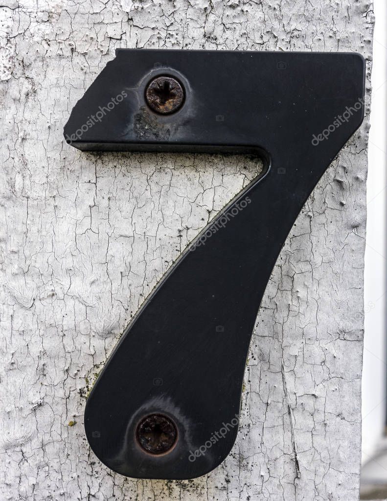 - Written Wording in Distressed State Typography Found Number Seven 7