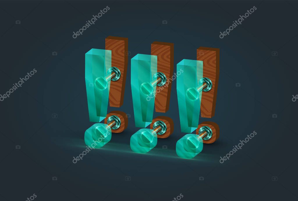 High-detailed wood and glass exclamation mark characters, vector illustration