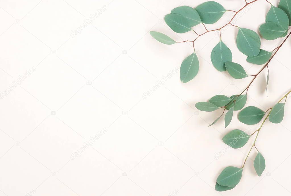 green eucalyptus twigs on light background