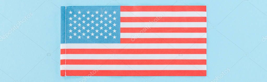 panoramic shot of national american flag on blue background