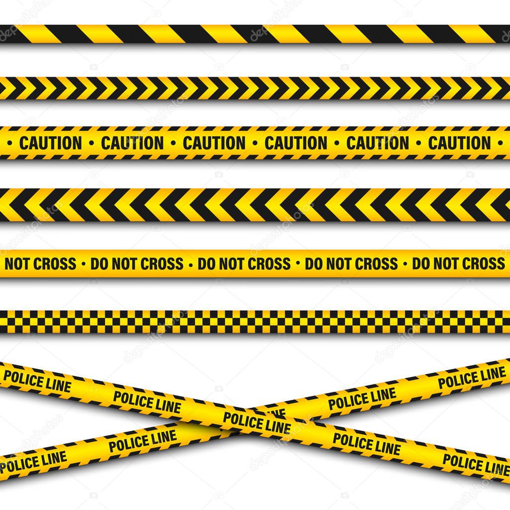 - Yellow And Black Barricade Construction Tape. Police Warning Line. Brightly Colored Danger or Hazard Stripe. Vector illustration.