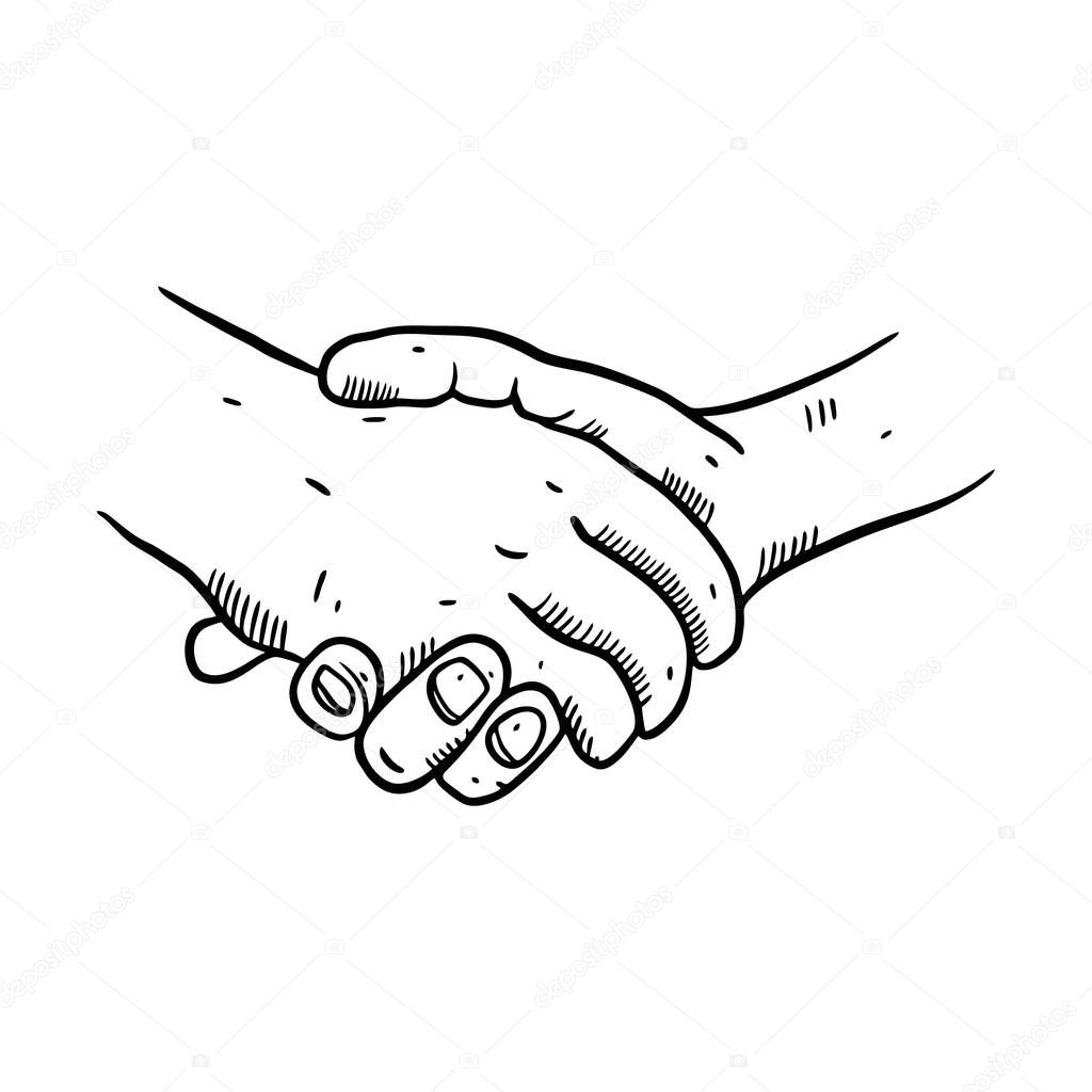 Handshake hand drawn vector illustration. Engraving style. Isolated on white bakground.