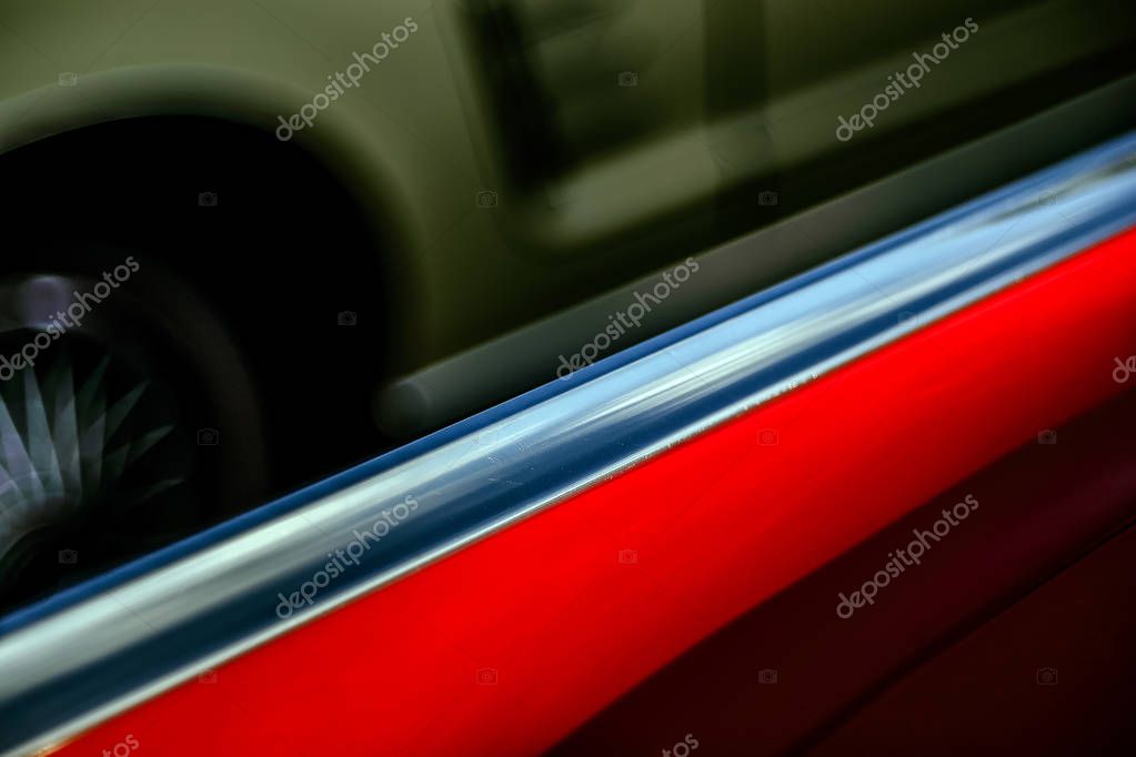 Classic car abstraction background. Soft focus, boke background with copy space. Vintage car details close up view. Abstract blur background of vintage car.