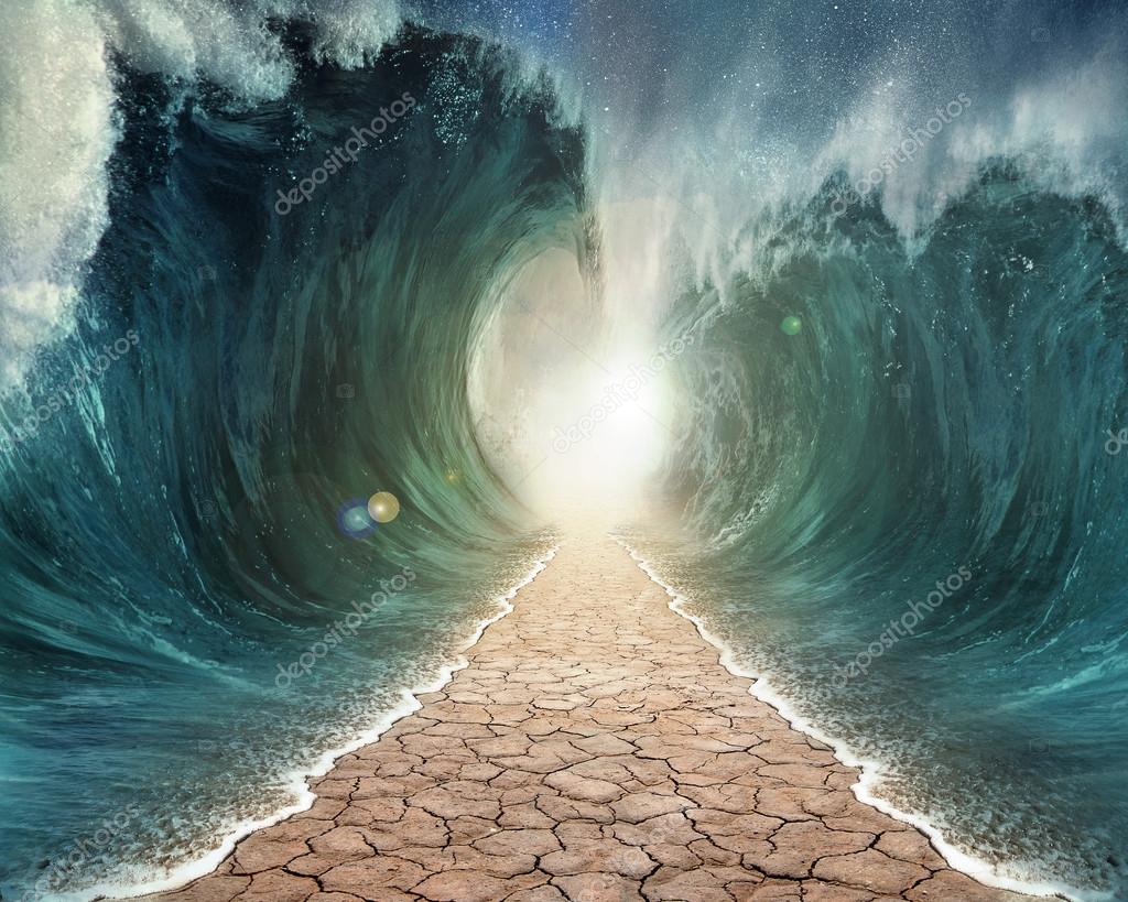 The seas are being parted with a pathway through the ocean.