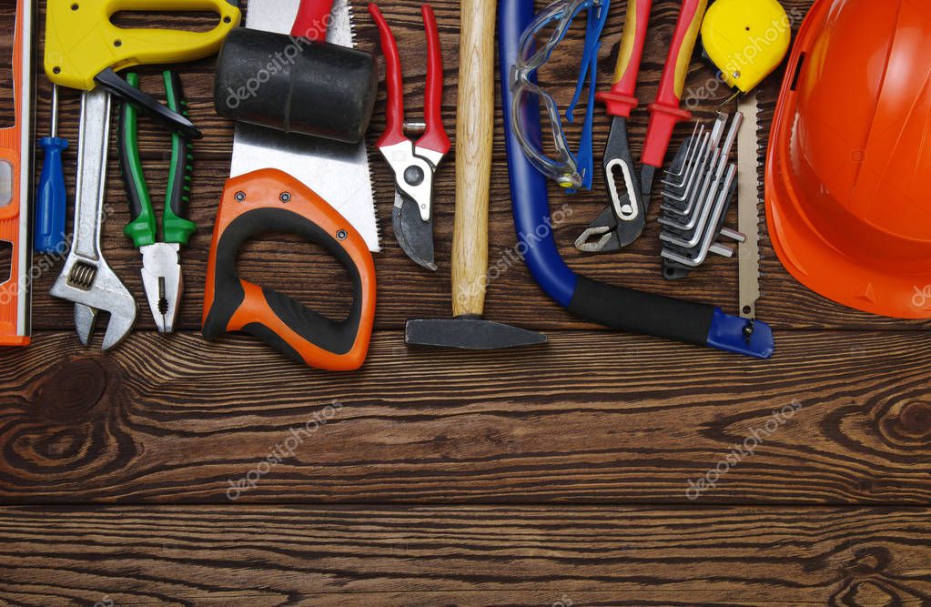 - Tools on wood background