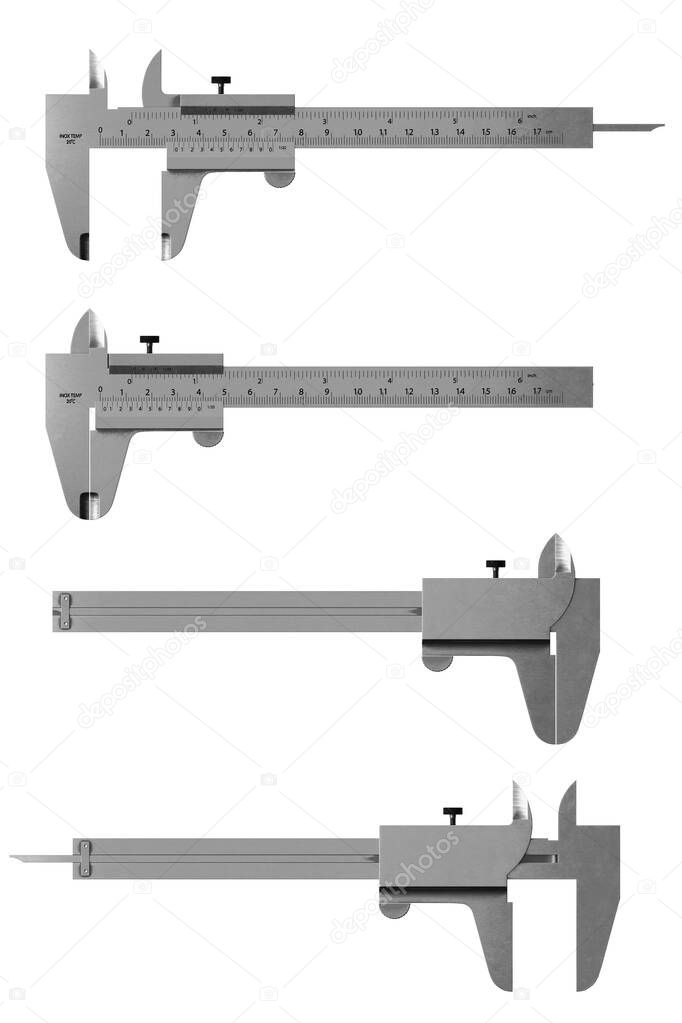 WHITE OBJECT NOBODY ISOLATED CLOSEUP EQUIPMENT METAL STEEL INDUSTRIAL TECHNOLOGY INSTRUMENT ACCURACY CONSTRUCTION MEASURE GAUGE MEASUREMENT TOOL SCALE METALLIC STAINLESS PRECISION ENGINEERING METER CENTIMETER MILLIMETER ENGINEER MECHANICAL RULE PRECISE CALIPER CALLIPER VERNIER MICROMETER CALIPER RULE