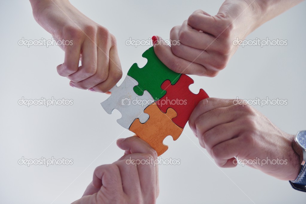 - Group of business people assembling jigsaw puzzle