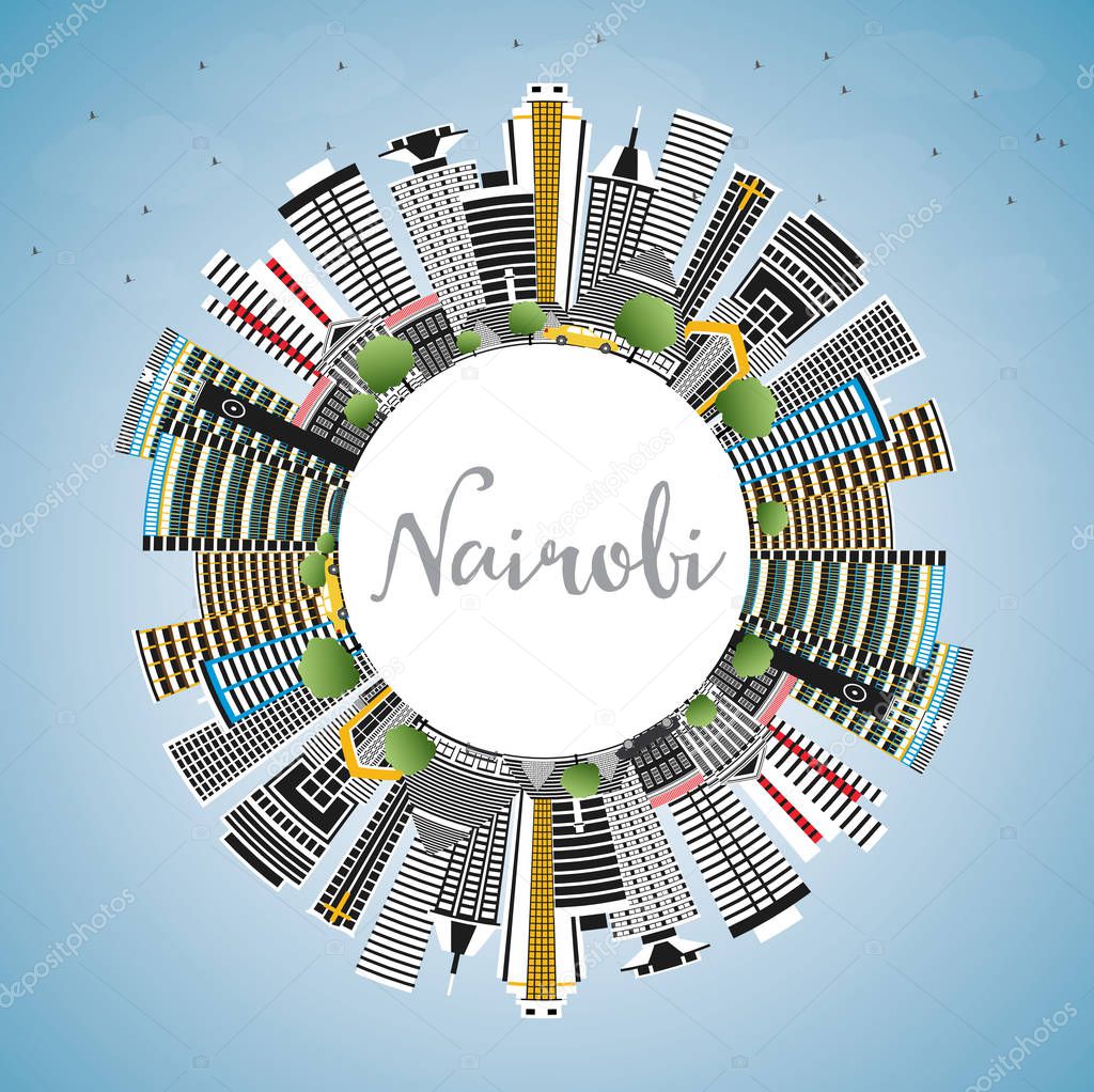 - Nairobi Kenya City Skyline with Color Buildings, Blue Sky and Co