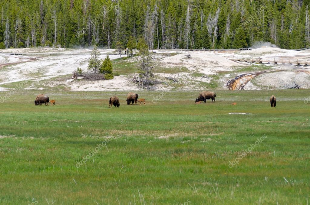- Bison with calves in Yellowstone