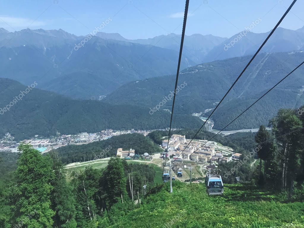 - Cable car in Caucasus mountains. Roza Khutor, Russia