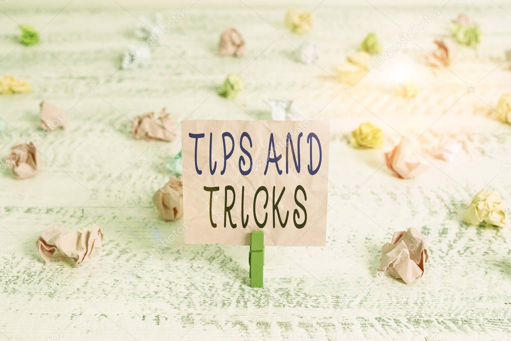 - Handwriting text Tips And Tricks. Conceptual photo piece of inside facts specially in betting or investing Green clothespin white wood background colored paper reminder office supply