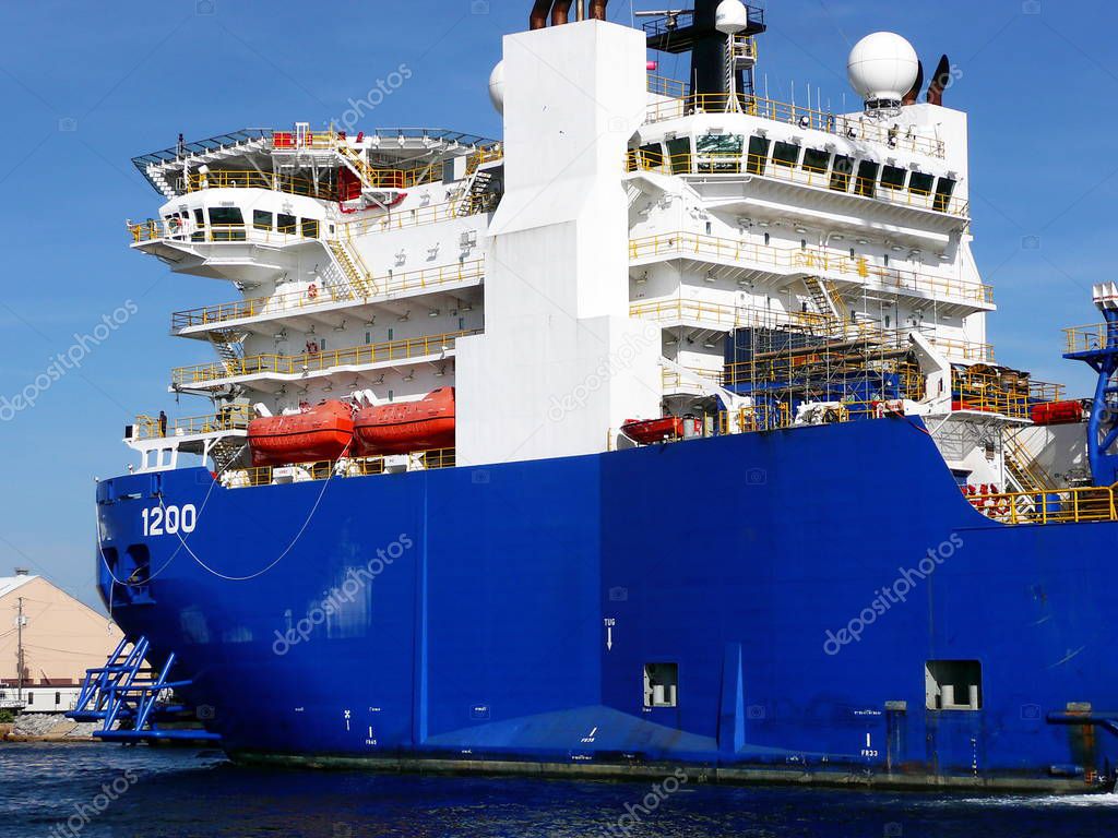Offshore supply ship docked at the Port of Pensacola, Florida, USA