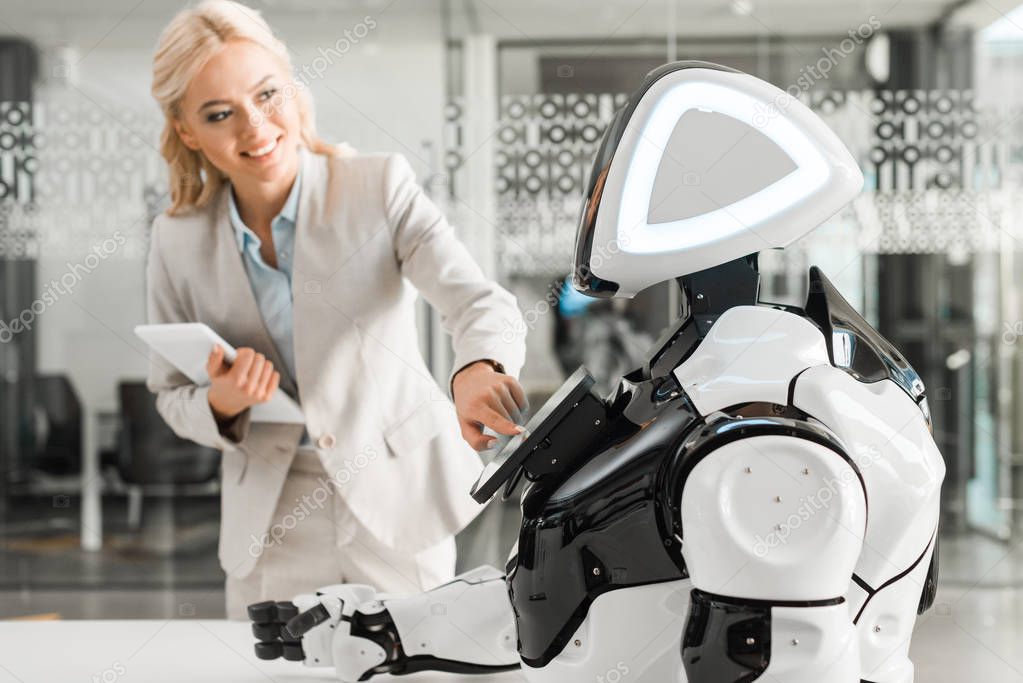 BEAUTIFUL BUSINESS SMILING SUCCESS CHEERFUL SMILE CONNECTION TECHNOLOGY MACHINE EMOTION CORPORATE FUTURISTIC OFFICE WOMAN COMMUNICATION ELECTRONIC WIRELESS DIGITAL MANAGER EMOTIONAL INDOORS PROFESSION ATTRACTIVE ROBOT CYBORG EXECUTIVE INNOVATION POSITIVE GADGET OPERATE SUCCESSFUL ROBOTIC BUSINESSWOMAN OPERATING CYBERNETIC HUMANOID PROFESSIONAL OCCUPATION ONE PERSON YOUNG ADULT FORMAL WEAR DIGITAL TABLET ARTIFICIAL INTELLIGENCE DIGITAL DEVICE