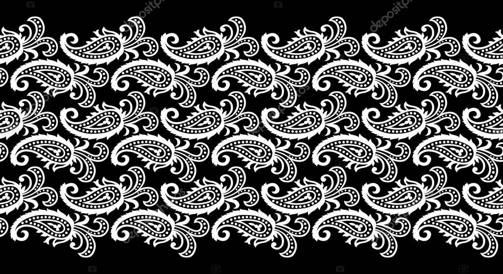 Seamless black and white paisley border design