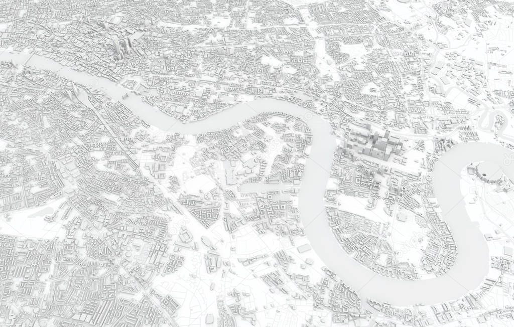 - London city map 3D Rendering. Aerial satellite view.
