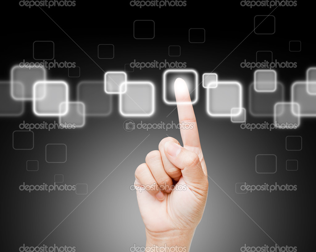 - Hand of women pushing button on touch screen