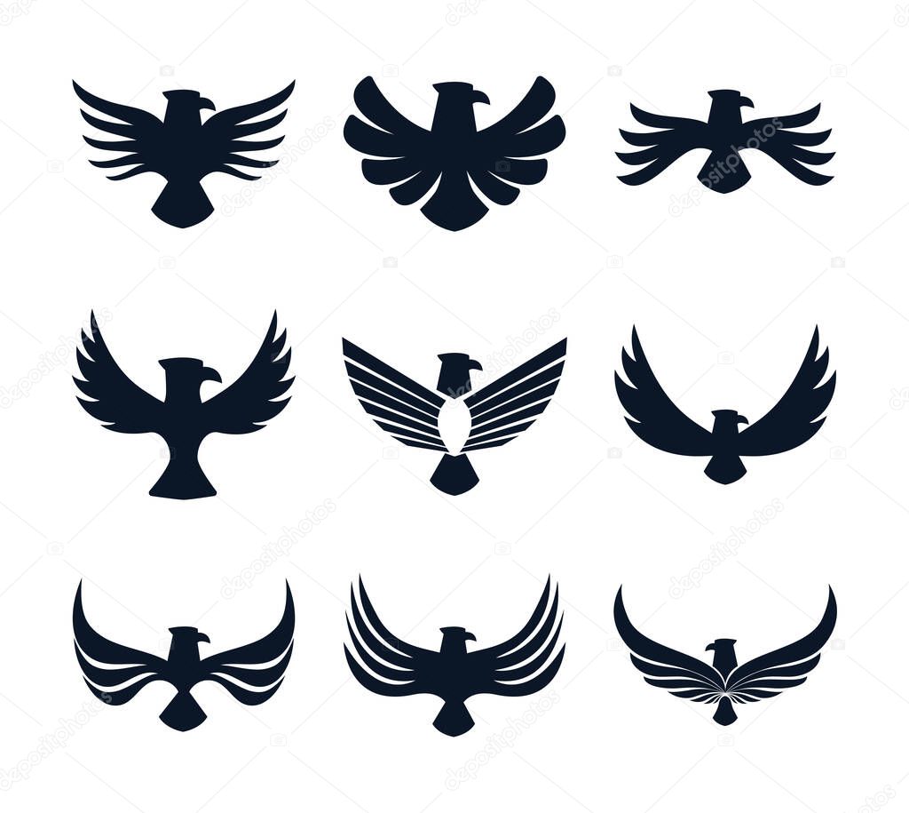 Eagle bird silhouette style icon set design, animal feather predator wildlife flight beak natural and tattoo theme Vector illustration