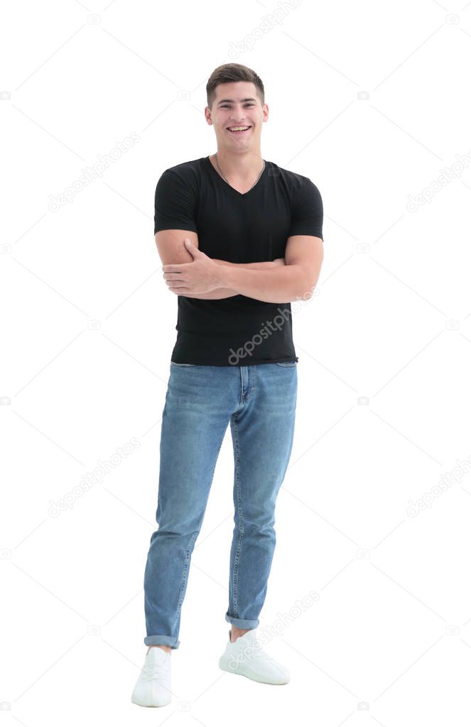 In full growth. casual guy in black t-shirt . isolated on white background