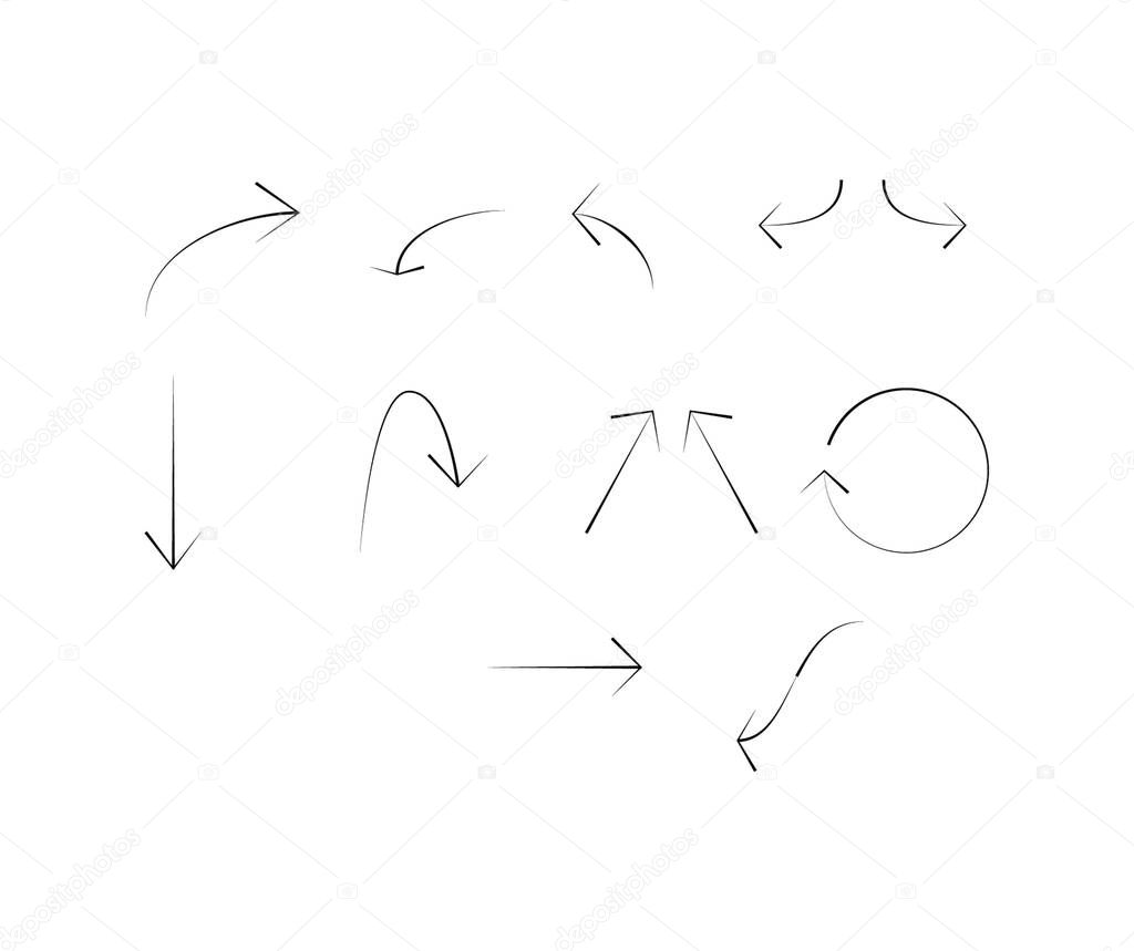- black arrows in different directions isolated on white