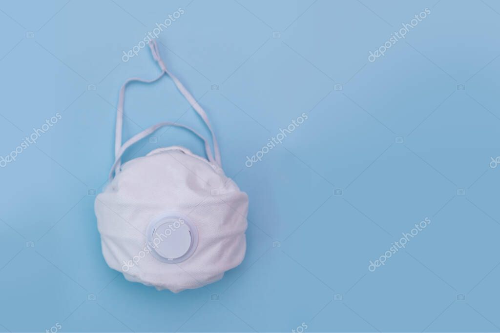White medical mask on blue background. A protection against pollution, virus, flu and coronavirus. Healthcare concept