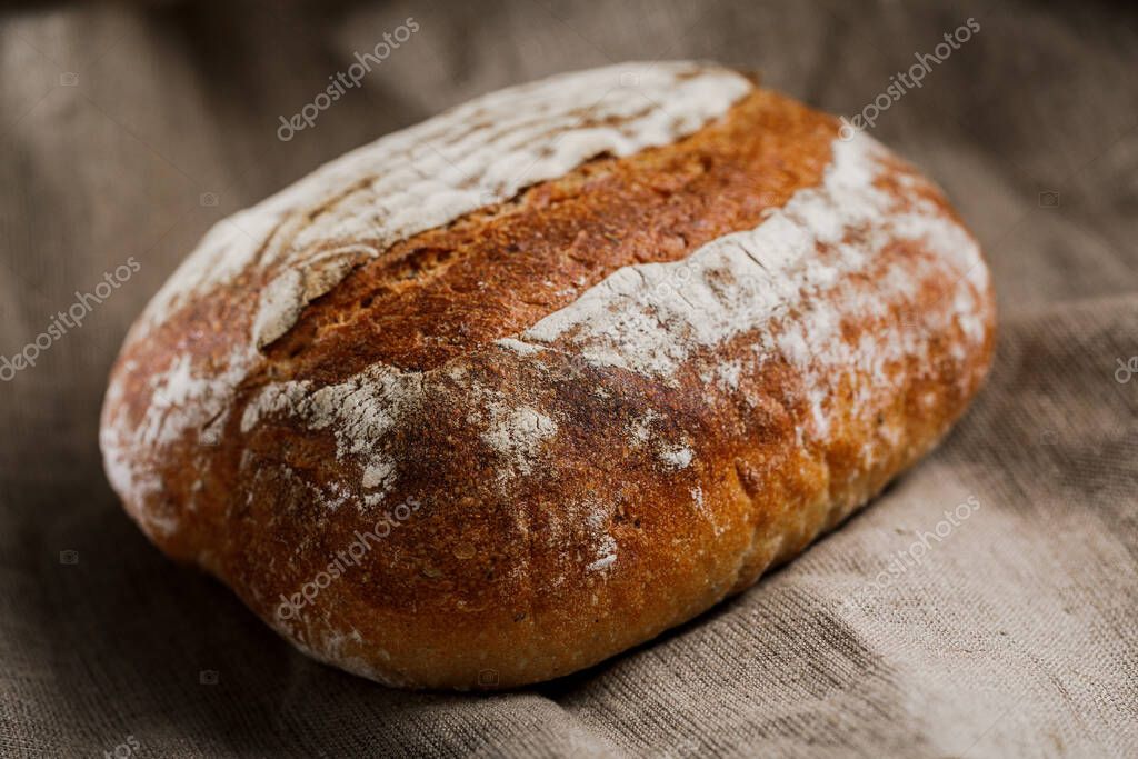 - Home bread. Sourdough bread. Whole-grain rye bread.