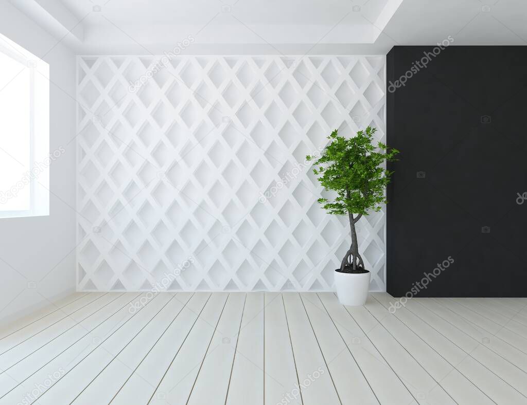 - White minimalist room interior. Home nordic interior. 3D illustration