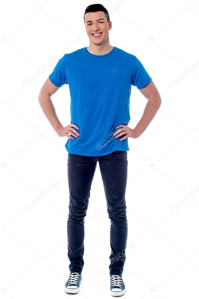 WHITE BACKGROUND ISOLATED HAPPY SINGLE PERSON STUDIO HUMAN ONE YOUNG SMILING MODEL JOY CHEERFUL CAUCASIAN MALE MAN FULL STYLE FASHION MODERN OVER COOL ELEGANT STYLISH SMART LIFESTYLE WAIST LOOKING TRENDY IN GUY LENGTH FRIENDLY JEANS CASUAL HANDSOME POSING SHOES POSITIVE STANDING GOOD FASHIONABLE DUDE