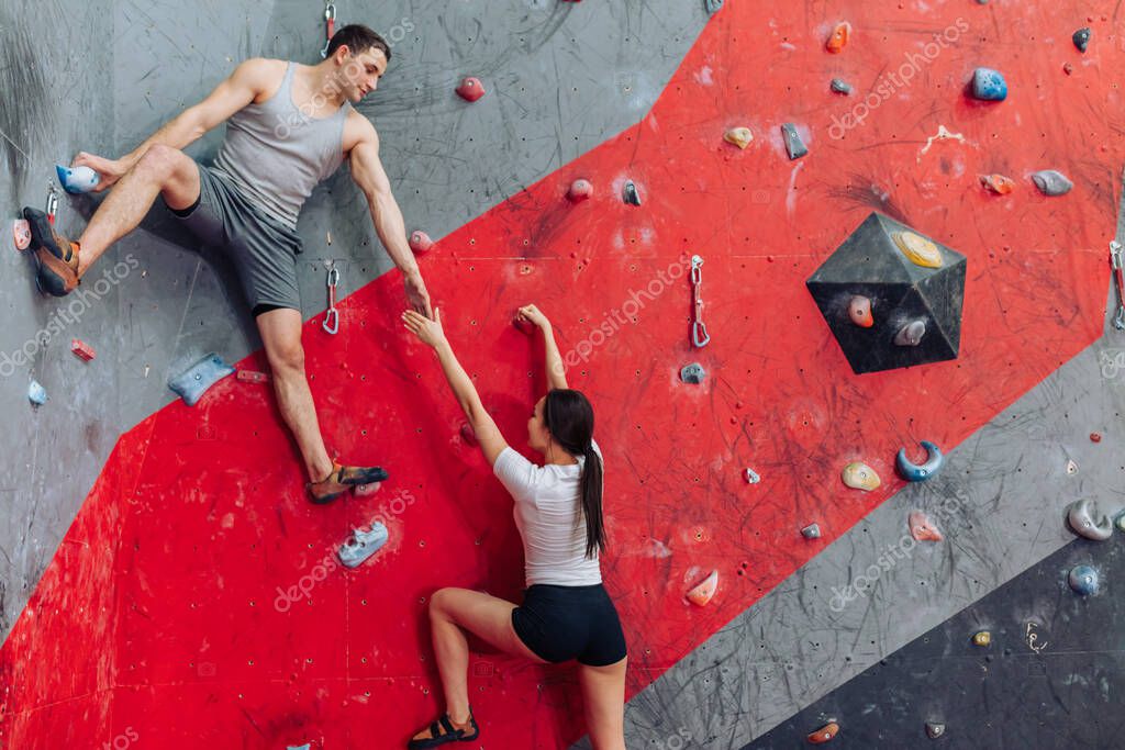 SPORT LEISURE ACTIVITY PERSON GIRL FEMALE PEOPLE HOBBY HEALTHY MALE MAN MOUNTAIN FULL FRIEND WALL INDOOR COUPLE STRONG ACTIVE WOMAN PHYSICAL LIFESTYLE GRIP FIT FITNESS INDOORS GYM EXERCISE STRENGTH ROCK SAFETY EXTREME LENGTH CLIMBING TRAINING CHALLENGE MUSCULAR WORKOUT CLIMB CLIMBER COACH INSTRUCTOR DETERMINED CLIMBERS BOULDERING TWO PEOPLE REAR VIEW INDOOR CLIMBING BOULDERER BOULDER WALL