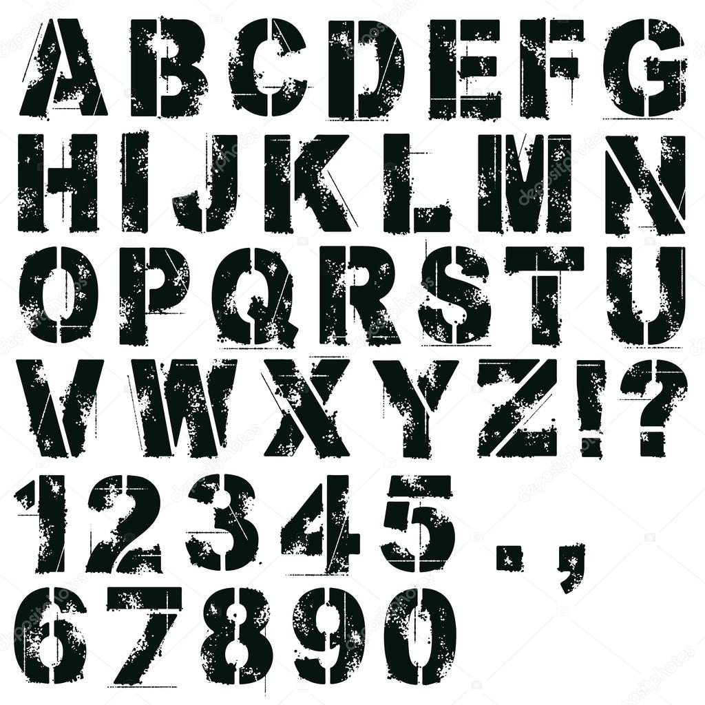 An Alphabet Set of Grunge Stencil Letters and Numbers
