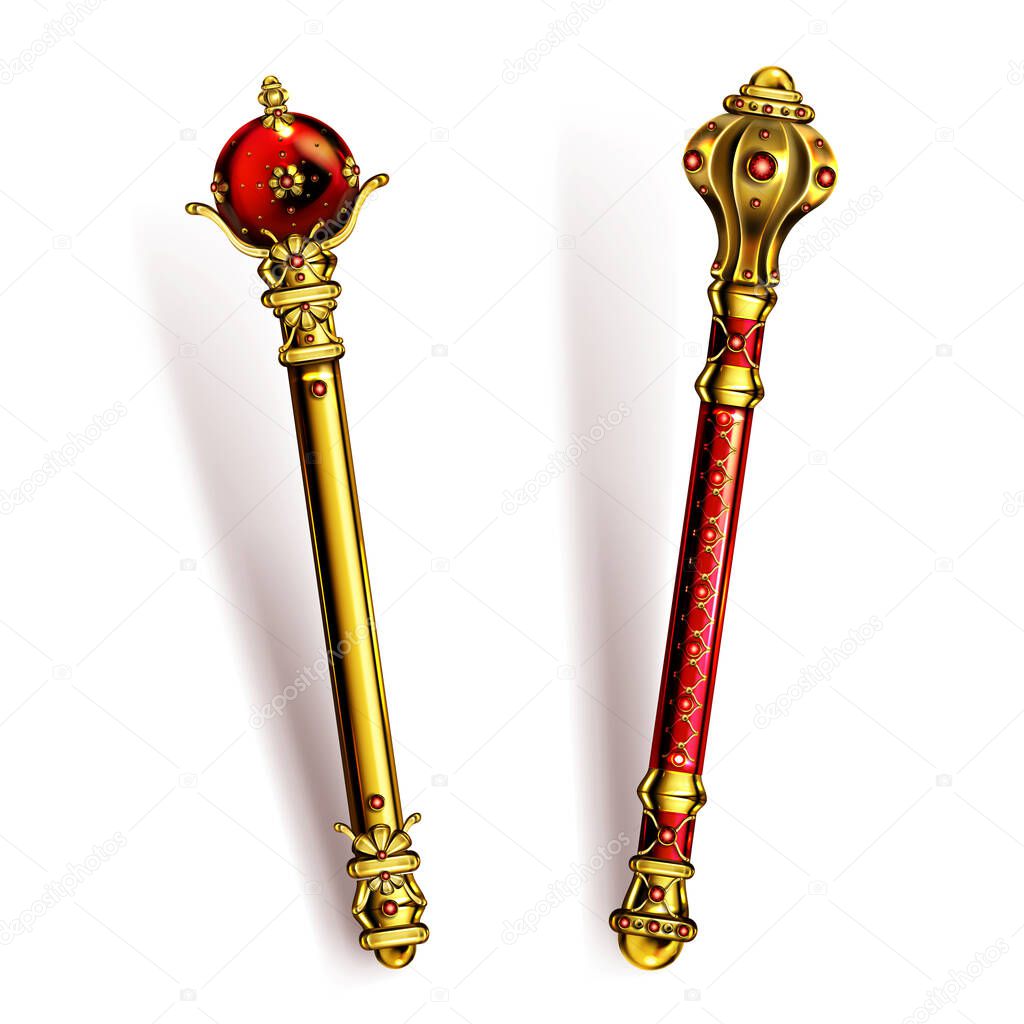 - Golden scepter for king or queen, royal wand.