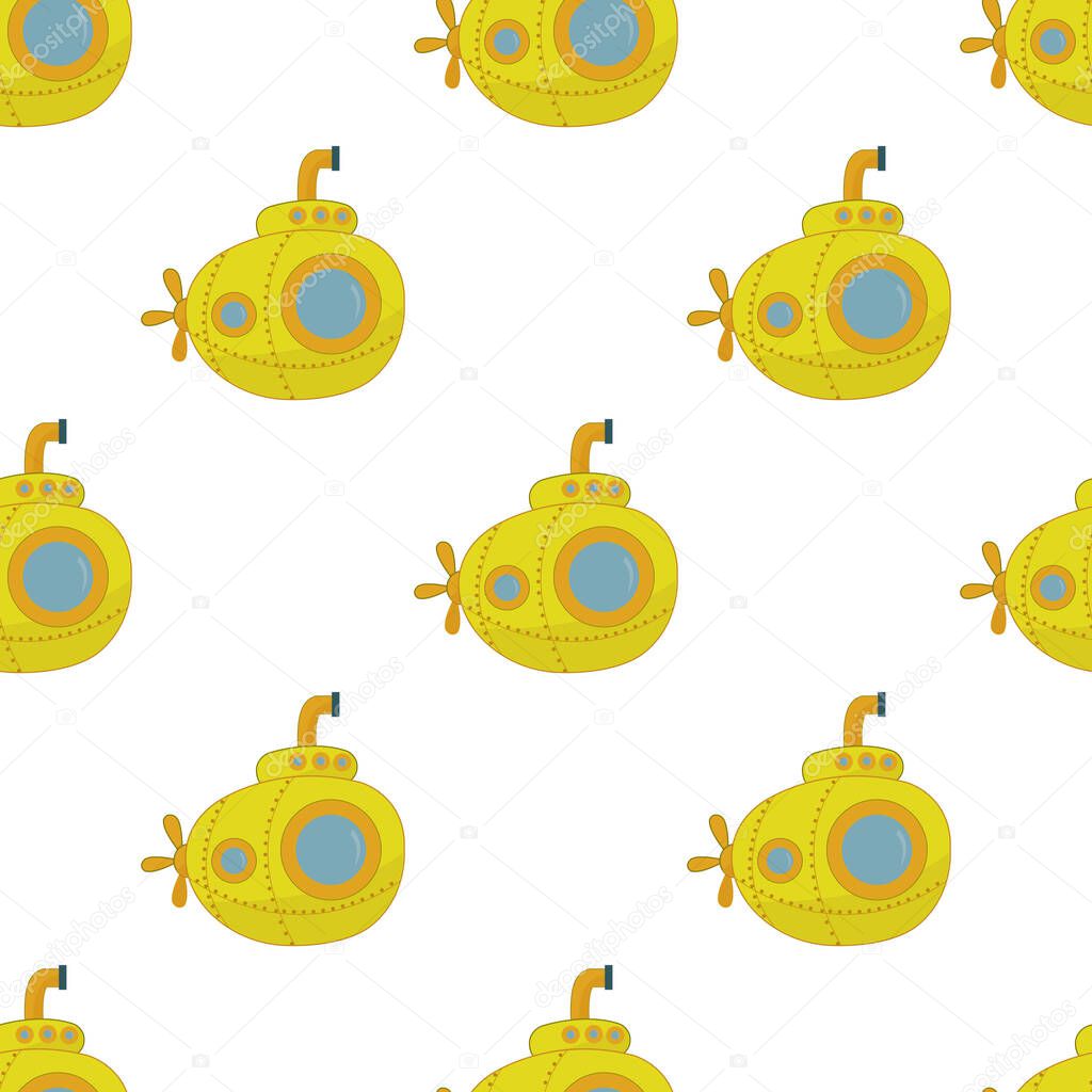 A seamless pattern with yellow submarines. Nursery wallpaper.
