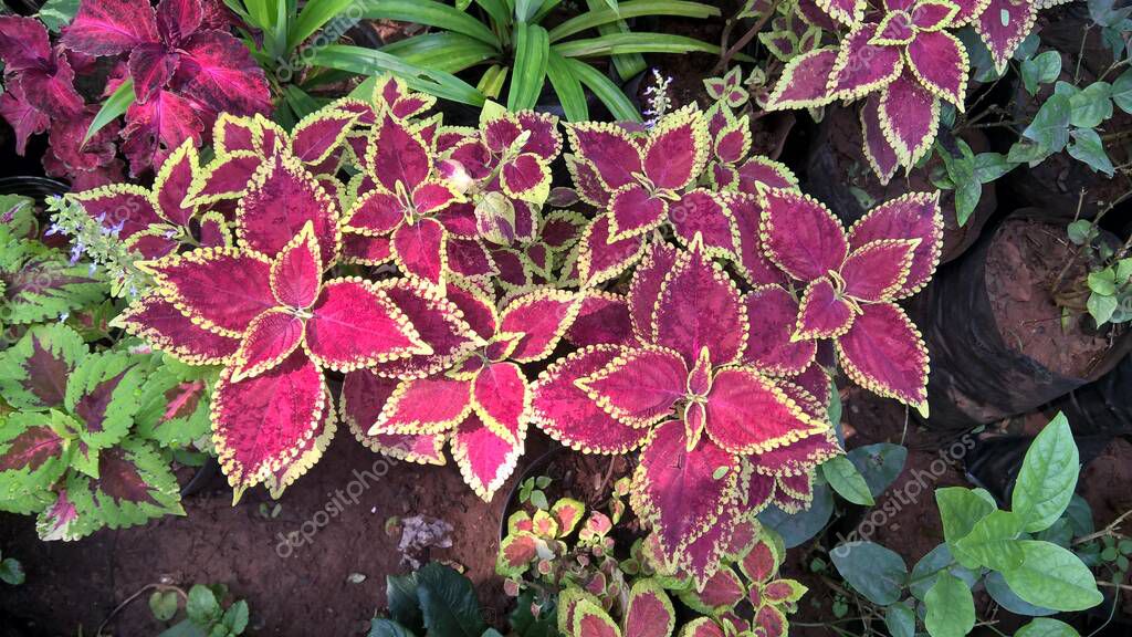 - scenic view of coleus plants also called Coleus blumei or Plectranthus scutellarioides