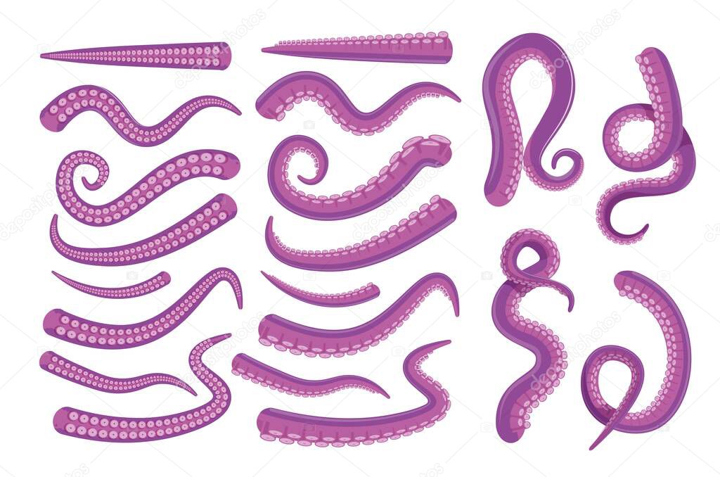 Octopus tentacle icon. cartoon octopus underwater animal tentacle set for animation construction. Spooky marine monster arm isolated on white. Creepy abyss creature feeler illustration