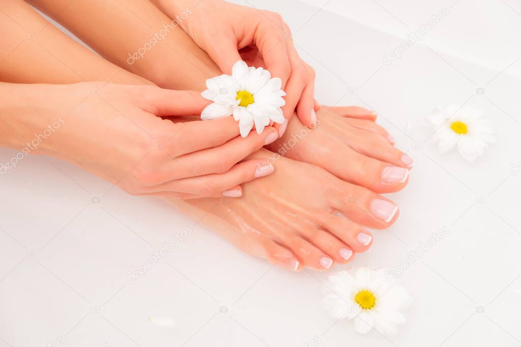 WHITE BEAUTIFUL DECORATION CLOSEUP HUMAN GIRL FEMALE YOUNG FEET BEAUTY RELAXATION FRESH HERBAL WATER CAUCASIAN FLOWER HEALTH HEALTHY NATURAL MEDICINE CARE FRENCH HAND SKIN SOFT RESTING RELAX MANICURE LEGS WOMAN FINGER BODY CLEAN HYGIENE SALON SPA THERAPY TREATMENT FOOT FINGERNAIL NAIL PEDICURE BAREFOOT CAMOMILE DAISY TOE WELLNESS TOES PAMPERING TOENAIL