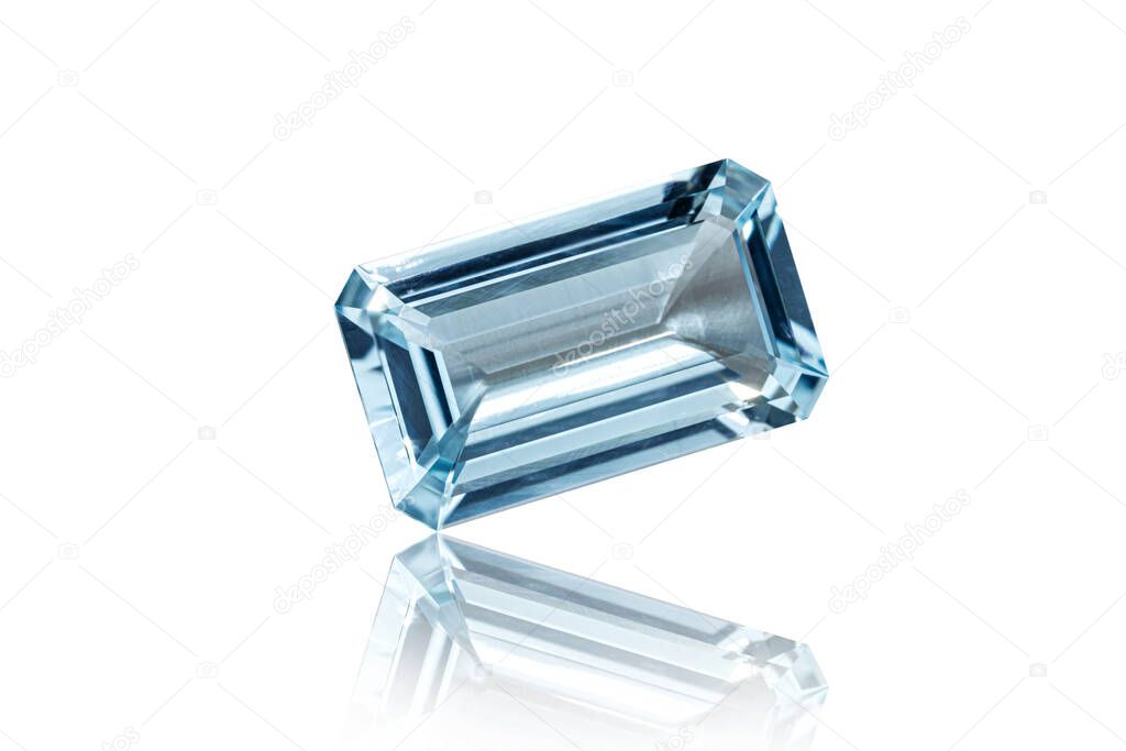 Macro stone mineral faceted aquamarine on a white background close-up
