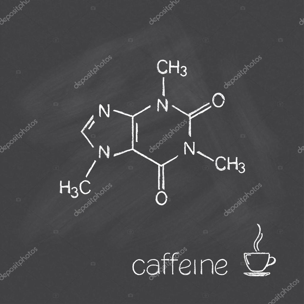 - Caffeine molecule and cup of coffee chalked on blackboard