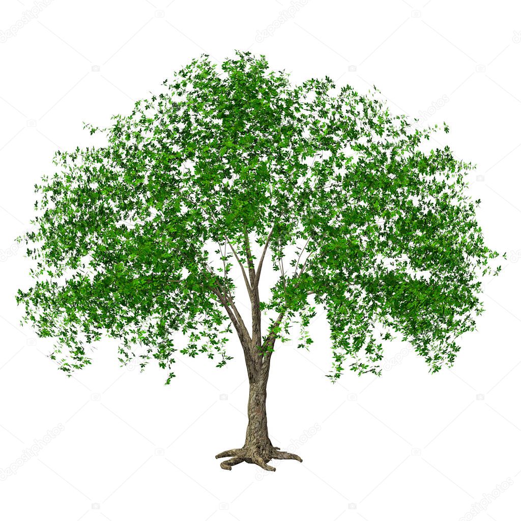 - 3D rendering of a green chestnut tree isolated on white background